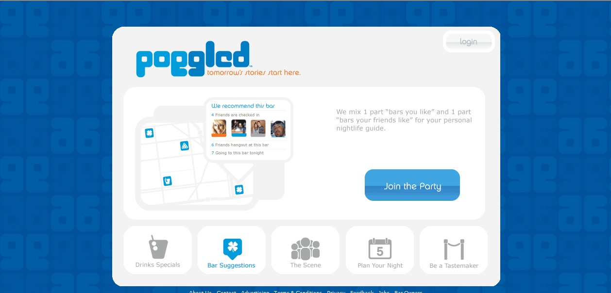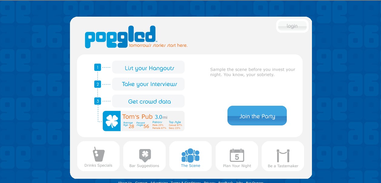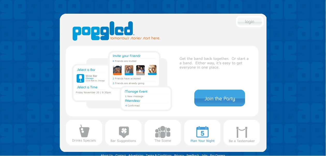 This past winter, I had the pleasure of helping the creators of a new community site restructure the user experience, revamp the copy and refine the content strategy from head to toe (so to speak). The purpose of Poggled.com is to give people an opportunity to get customized bar recommendations, get the inside deal on drink specials at bars they like and bars they would like, and hook up with their friends to head out on the town. Fun, huh?