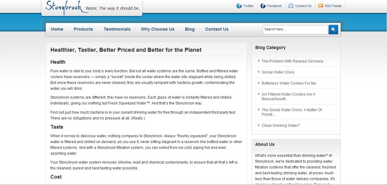 I had the privilege of working with the fine people at Stonybrook Water to help them rewrite their website. Now, it's a whole lot clearer — much like their water.